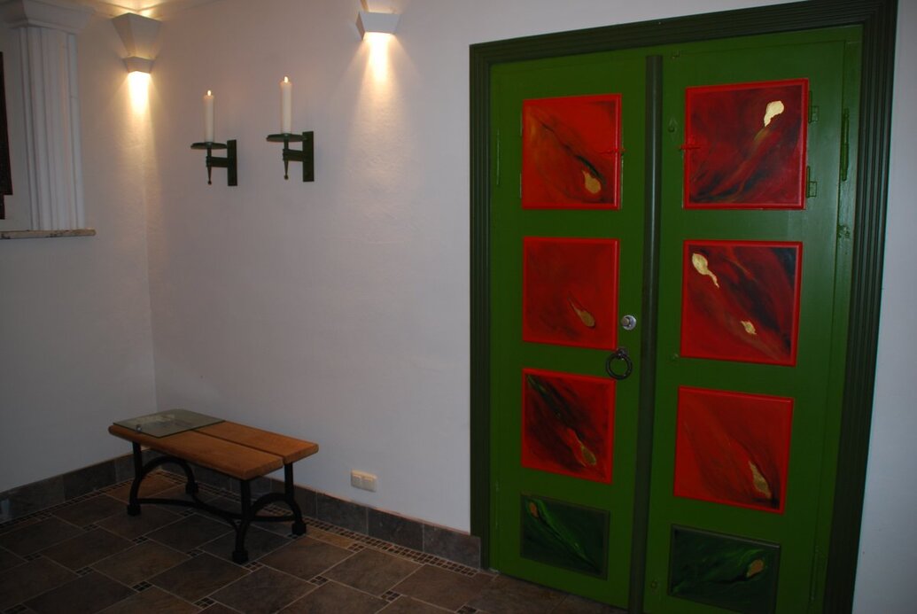 Das Kolumbarium finden Sie etwa 50 m links vom sog. "Ehrenmal", welches sich am Ende des Hauptweges befindet. Es ist mit seinem gestaffelten, kupfernen Dach, der farbigen Doppeltür und den schön gestalteten Säulen vor dem Eingang nicht zu übersehen.