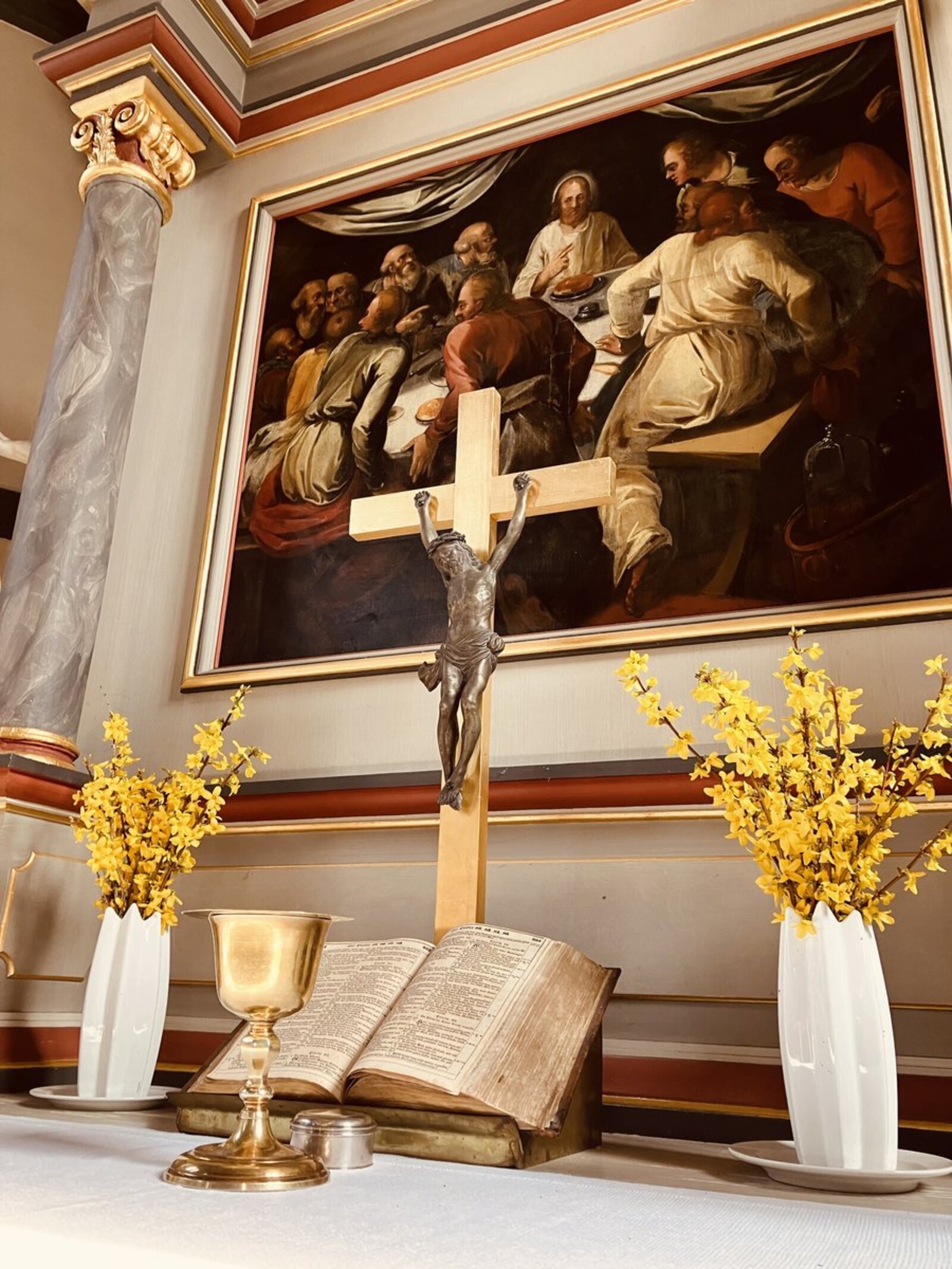 So feiern wir den Gottesdienst in der Regel am Sonntag um 10 Uhr, oft mit dem Empfang des heiligen Abendmahls.