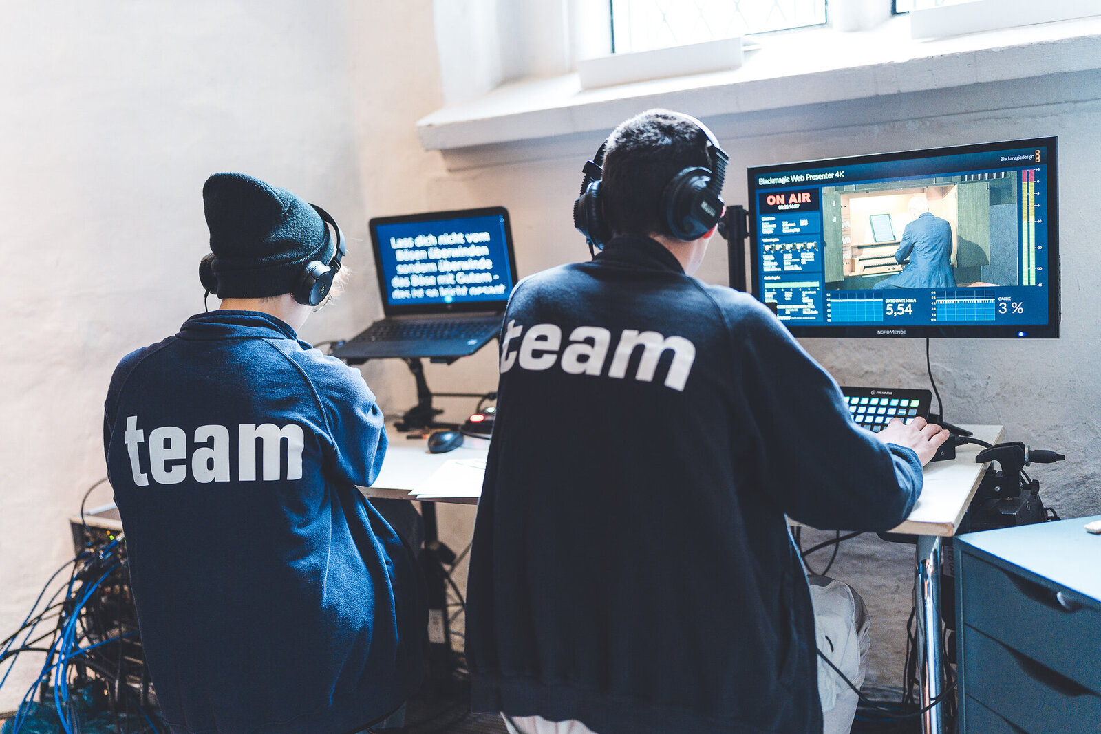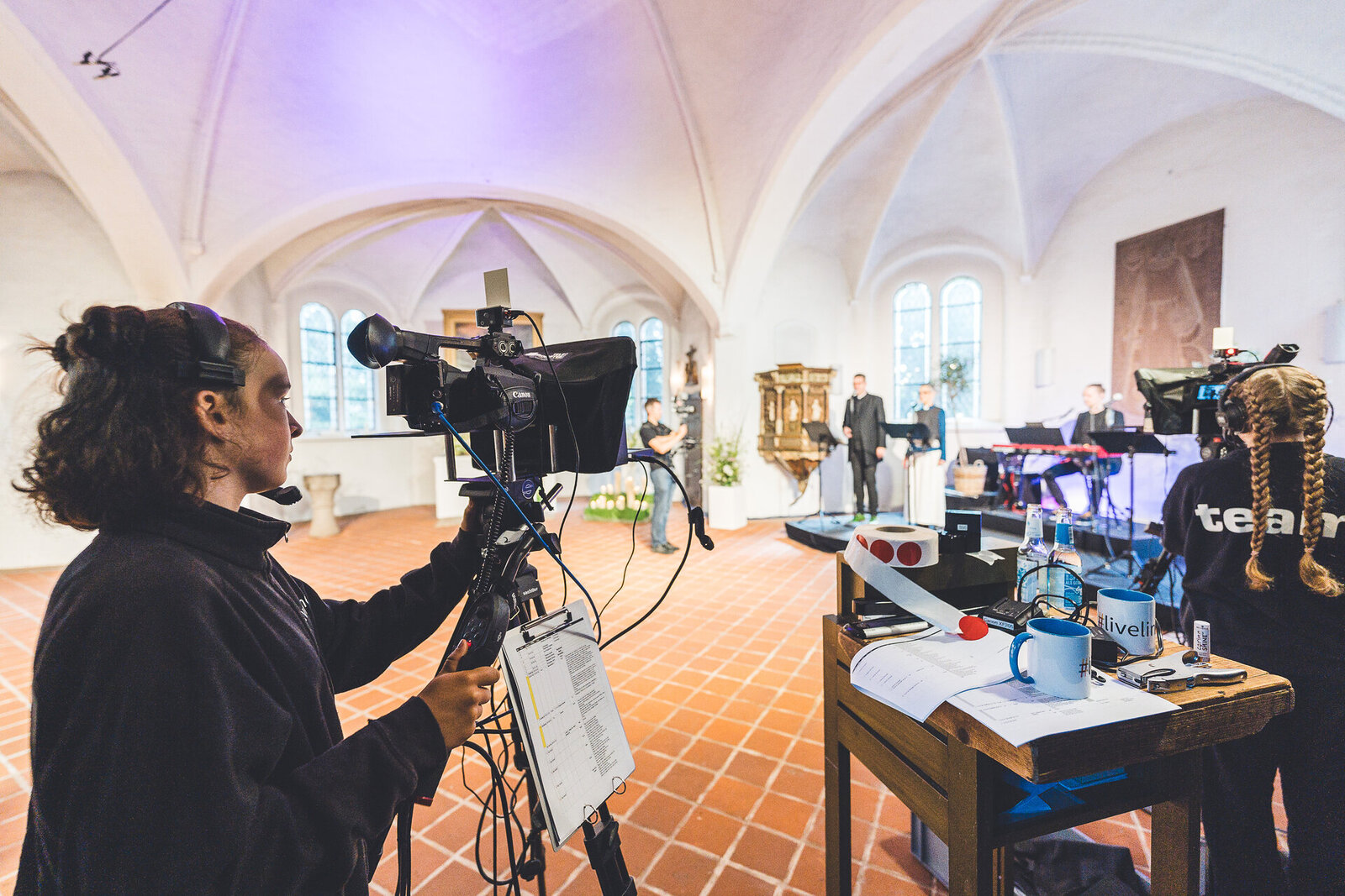Von Anfang an war #liveline Teamarbeit. Das Pfarrteam der St.-Jürgen-Gemeinde und ein großes Team jugendlicher Ehrenamtlicher brachten sich ein – viele von ihnen hatten schon Erfahrung mit Livestreams und hatten eine Ahnung, wie Bild und Ton zusammenkommen müssen, damit ein echter Gottesdienst „auf dem Bildschirm“ wird. Diese Mischung aus Erfahrung und Neugier bringt die Energie, die #liveline bis heute prägt.