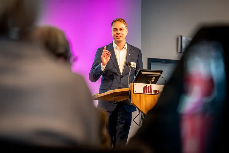 Ein Mann steht am Rednerpult