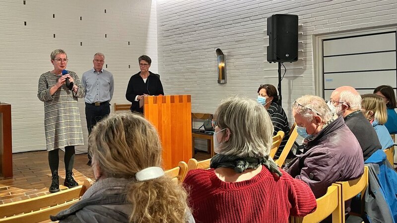 Kritik äußerten einige Gemeindeglieder an der Informationspolitik. Sie bemängelten, erst jetzt von den Planungen erfahren zu haben, hätten die Verantwortlichen doch bereits Mitte 2020 die Eckpunkte für die Neustrukturierung festgelegt. Zudem wollten einige wissen, mit welchen Summen der Kirchengemeinderat für die beiden Standorte kalkuliere. Pröpstin Kallies betonte, dass es keine konkreten Summen gebe, zumal dies von einer Vielzahl von Faktoren abhängig sei. „Es gibt auch noch keinen Zeitplan. Gern hätten wir Ihnen heute bereits Perspektiven für den Standort über eine mögliche Nachnutzung aufgezeigt, aber das Verfahren dauert leider ein wenig.“ Hinzu kommt, dass der Kirchengemeinderat das Konzept zunächst einmal auf seine Machbarkeit hin prüfen musste, ergänzt Heiko von Kiedrowski.