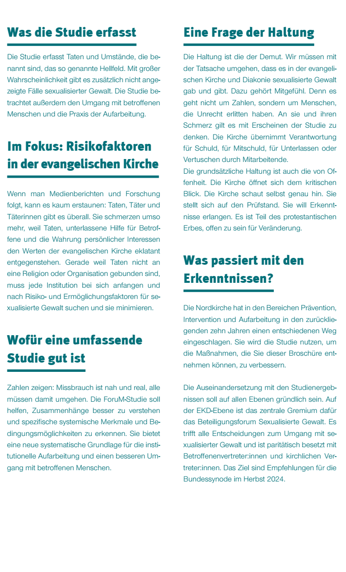 Hier gelangen Sie zu den Erläuterungen der Stabsstelle Prävention der Nordkirche zur ForuM-Studie.
